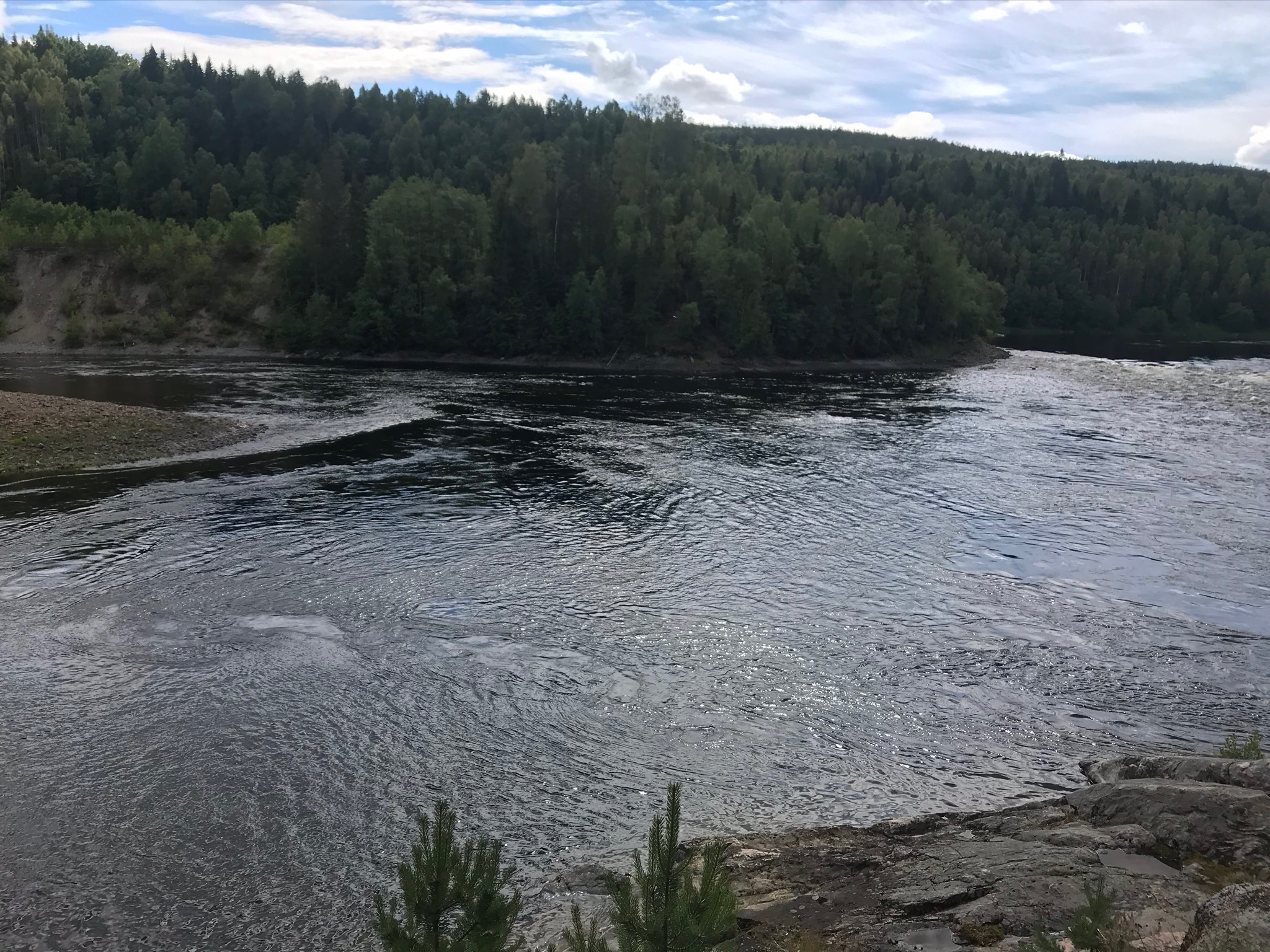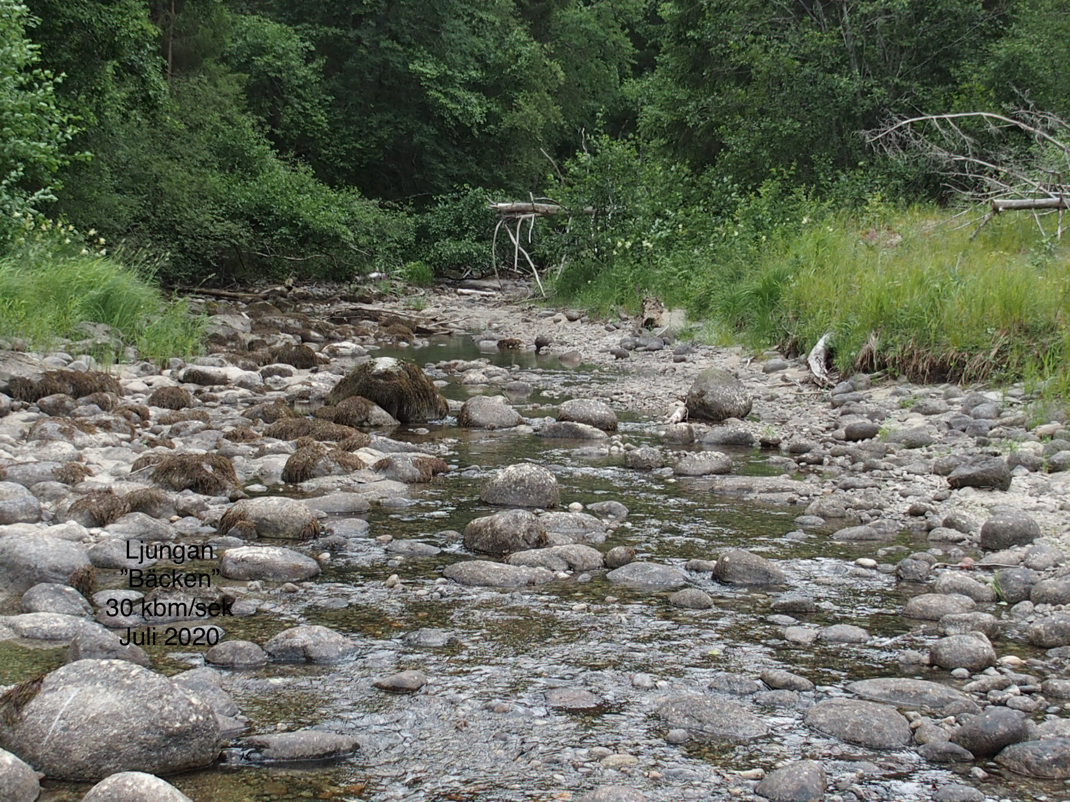Bilaga: foto från ”Bäcken” som är en förgrening av Grenforsen. Flöde 30 kbm/sek. Datum 23 juli 2020.