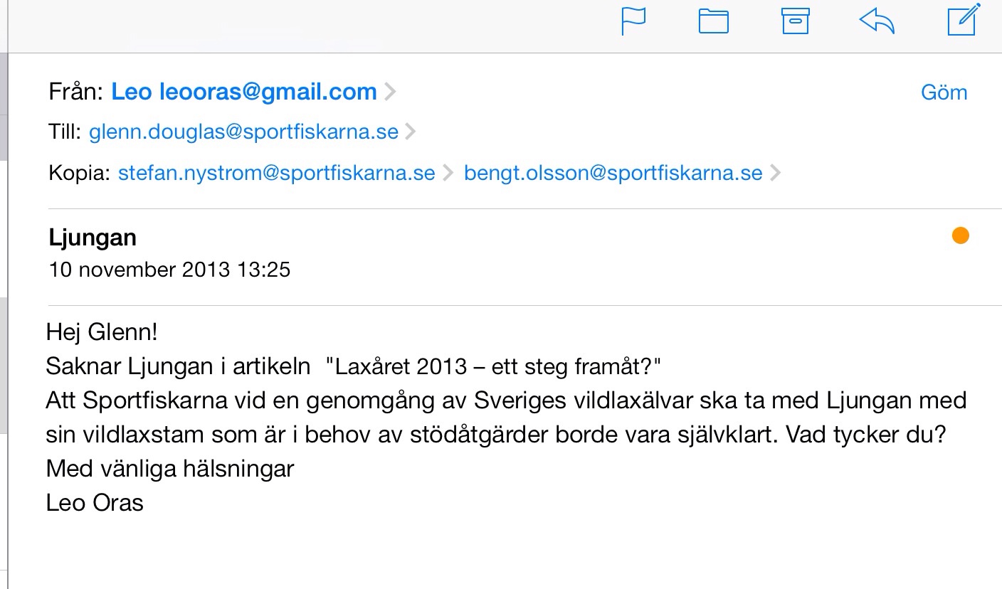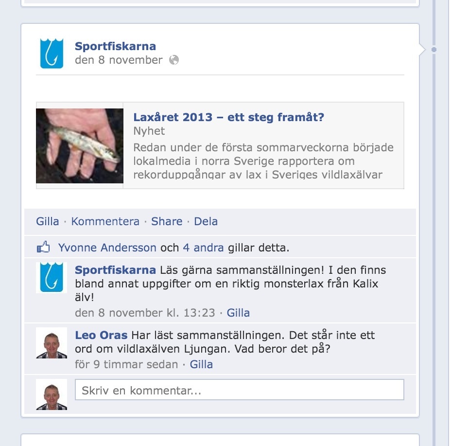 Sportfiskarna har inte nämnt Ljungan i artikeln ”Laxåret-ett steg framåt?” Se även https://ljunganinfo.com/2013/11/09/1811/