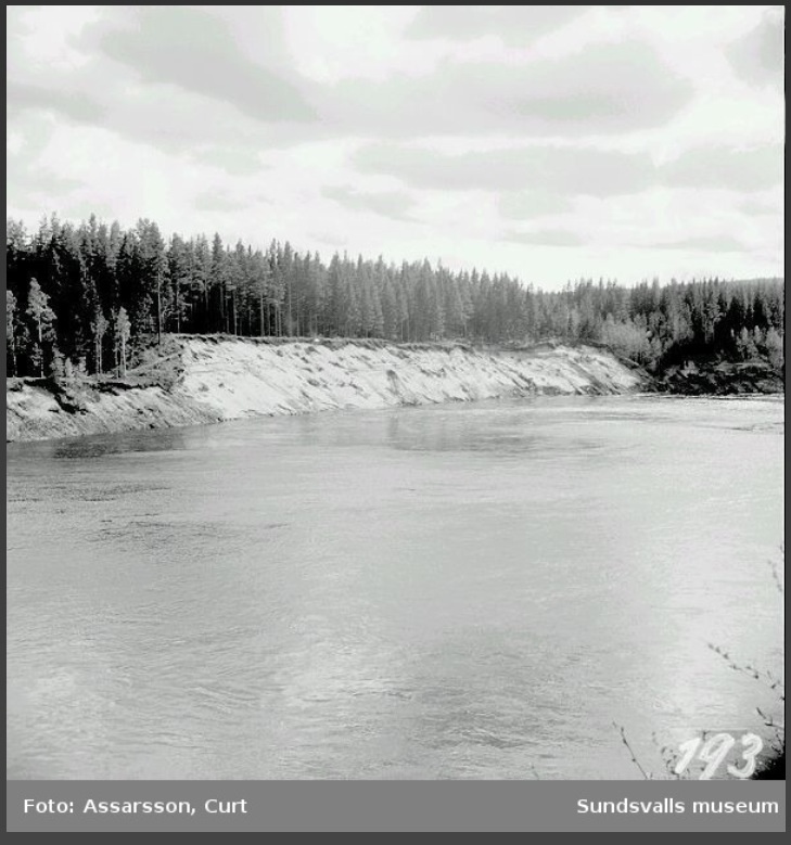 Fotografiet avbildar södra sidan, nedströms Nolbyströmmen någon gång under åren 1945-1950.