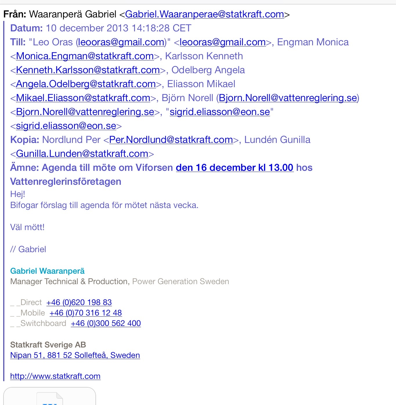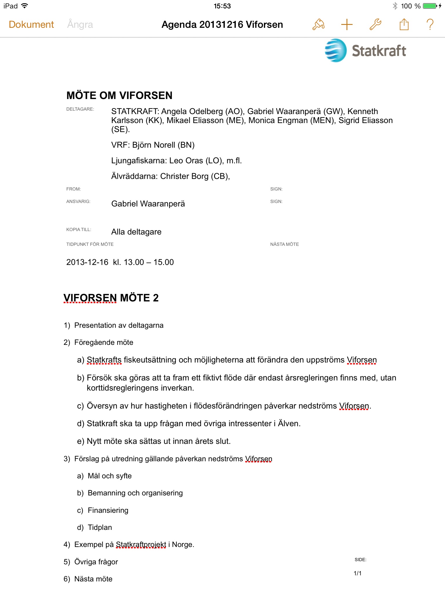 Ljunganfiskarna har ett möte med Statkraft måndagen den 16/12.