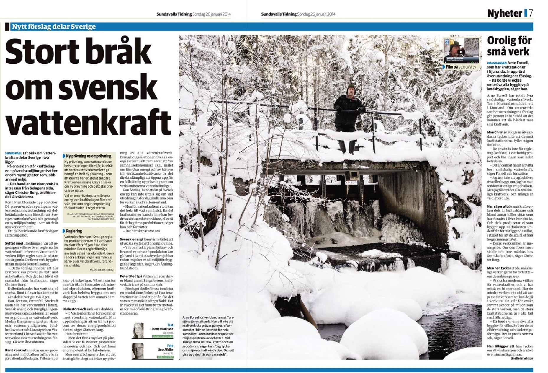 Sundsvalls Tidning har skrivit om Vattenverksamhetsutredningen söndagen den 26/1 2014. Läs artikeln nedan!