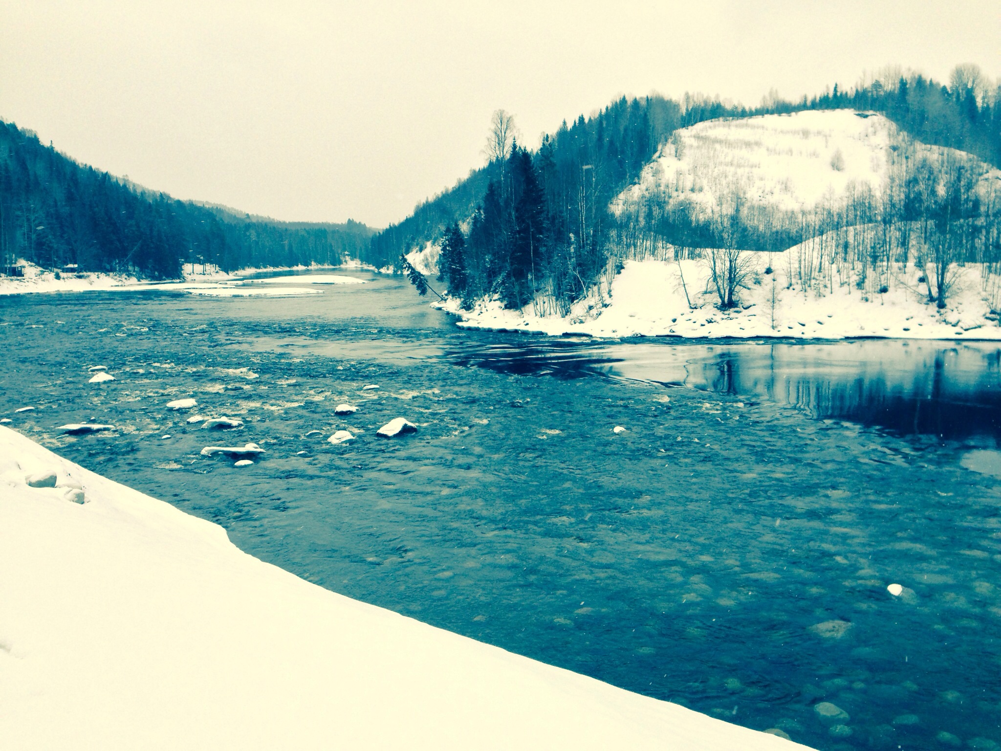 Allstaforsen torsdagen de 20 februari 2014. Vattenföring 150 kbm/sek.