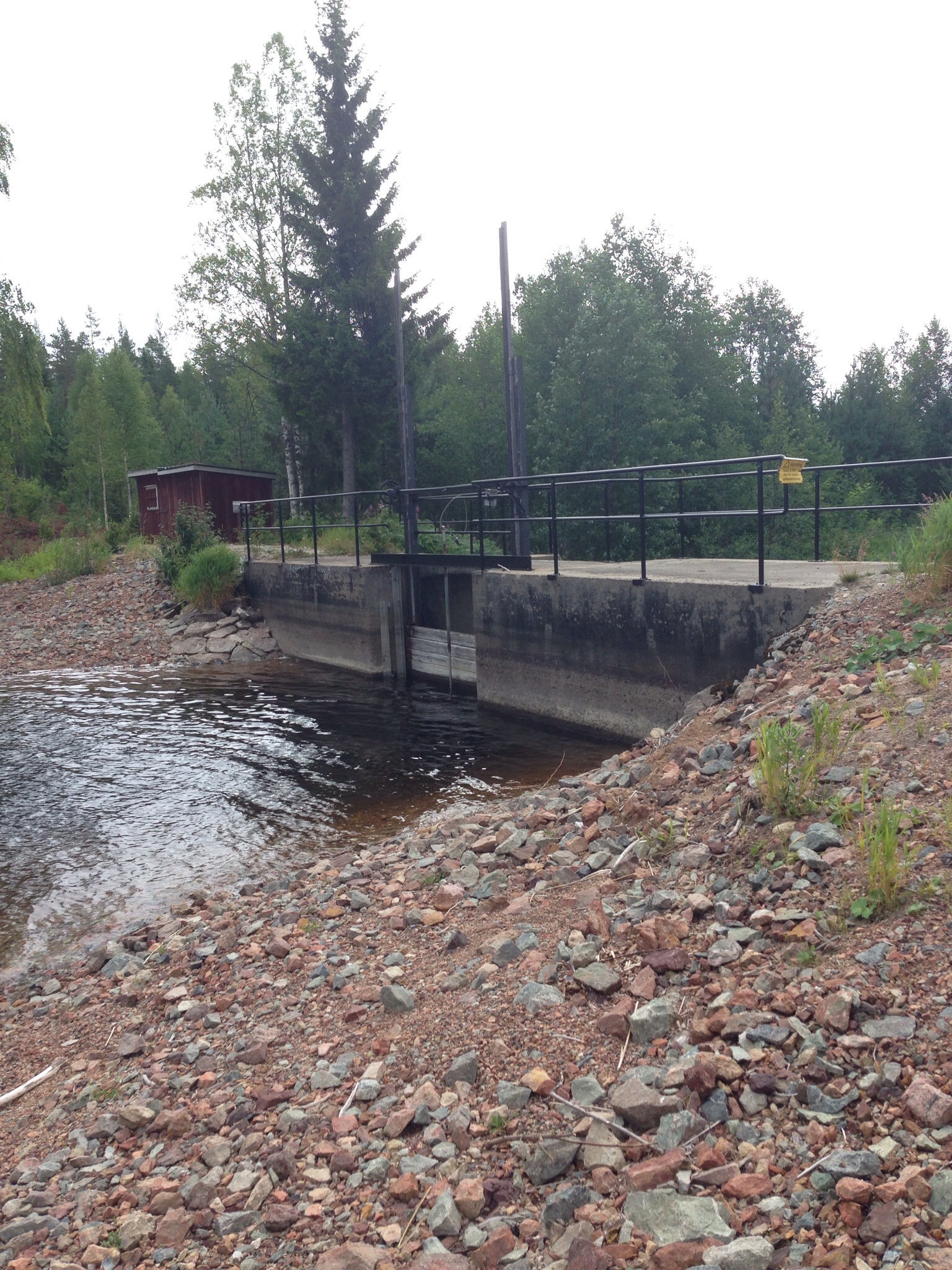 Översta bilden är dammen från sjösidan. Andra bilden är utloppet direkt vid dammen.