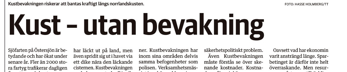 ”Kustbevakningen är en oerhört viktig resurs. Men framöver kan det bli mycket svårare för Kustbevakningen att göra ett bra arbete. Ett förslag på en besparing på 133 miljoner, och en nationell neddragning med 125 tjänster (av totalt 800), ligger från regeringen”