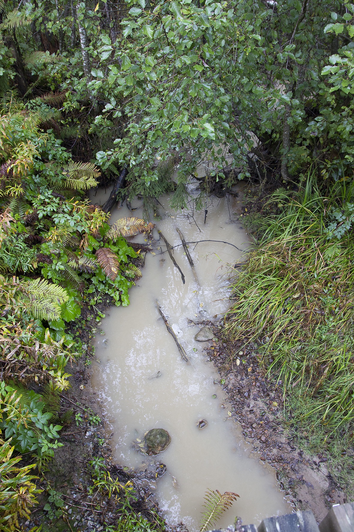 Utöver detta finns en massa bråte som inte hör hemma någonstans i naturen. Strax uppströms sammanflödet med bäcken som går genom anläggningen finns 6 ! stora traktordäck, några delvis nedgrävda i bäcken, andra ligger på land samt delar av en byggnad som effektivt dämmer upp vattnet.