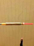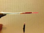 Nr 2 Put the small Plastic Tube into the large one. Tie them together and tie the red thread arond the tube. Leave 5 mm untied.