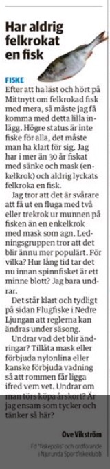 ”Svar på Ove Vikströms insändare den 25/12-14 i ST angående förbudet att fiska med sänke och möjligheten att ändra fiskebestämmelserna under säsongen i Ljungan nedströms Viforsens kraftverk.
