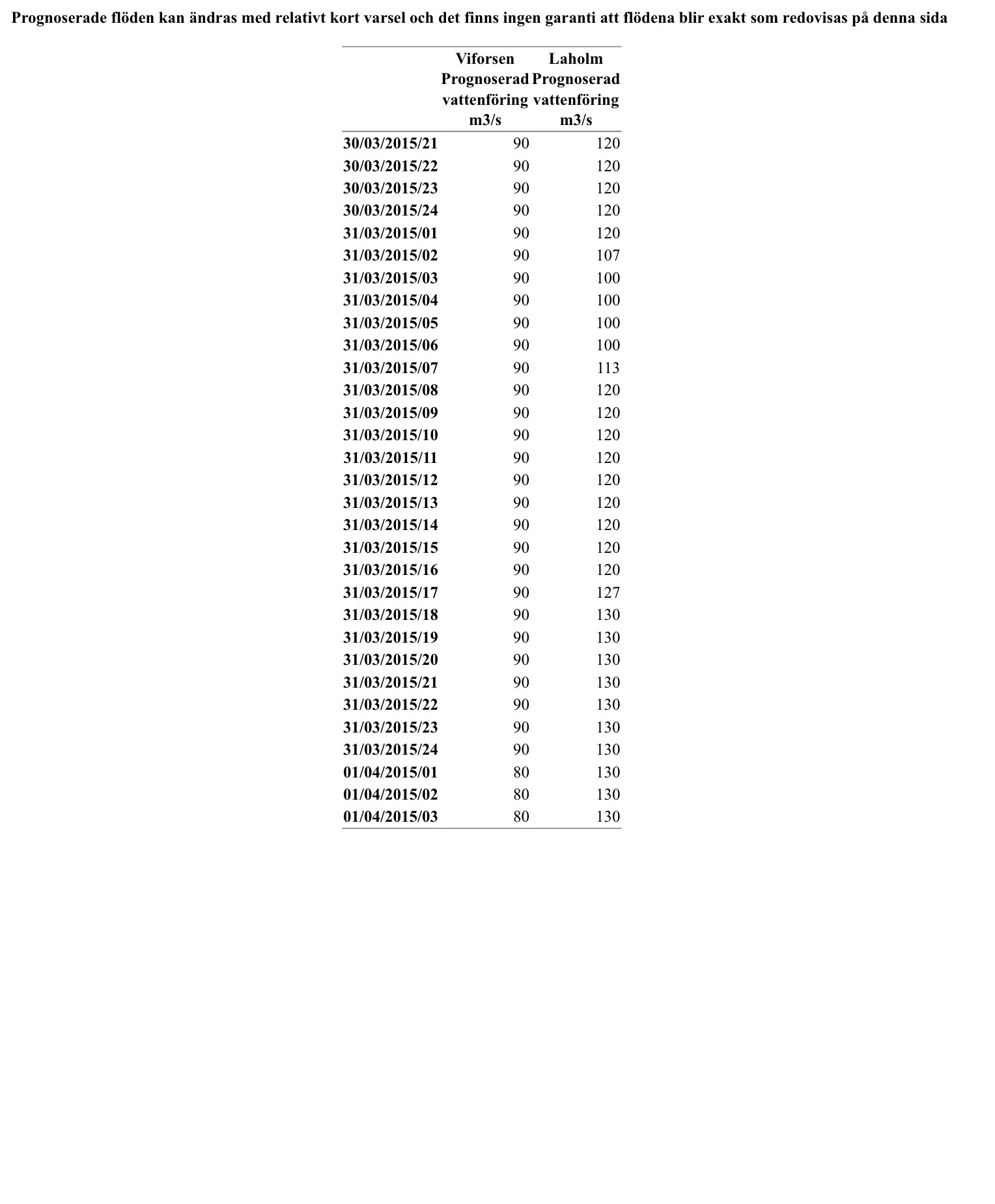 Deras svar är att flödet kommer att vara relativt lågt från och med nu och under påskhelgen för att sedan öka succesivt under ett par dagar tills flödet blir högt igen. Reservation dock för oväntade väderförändringar som exempelvis hastiga skyfall.