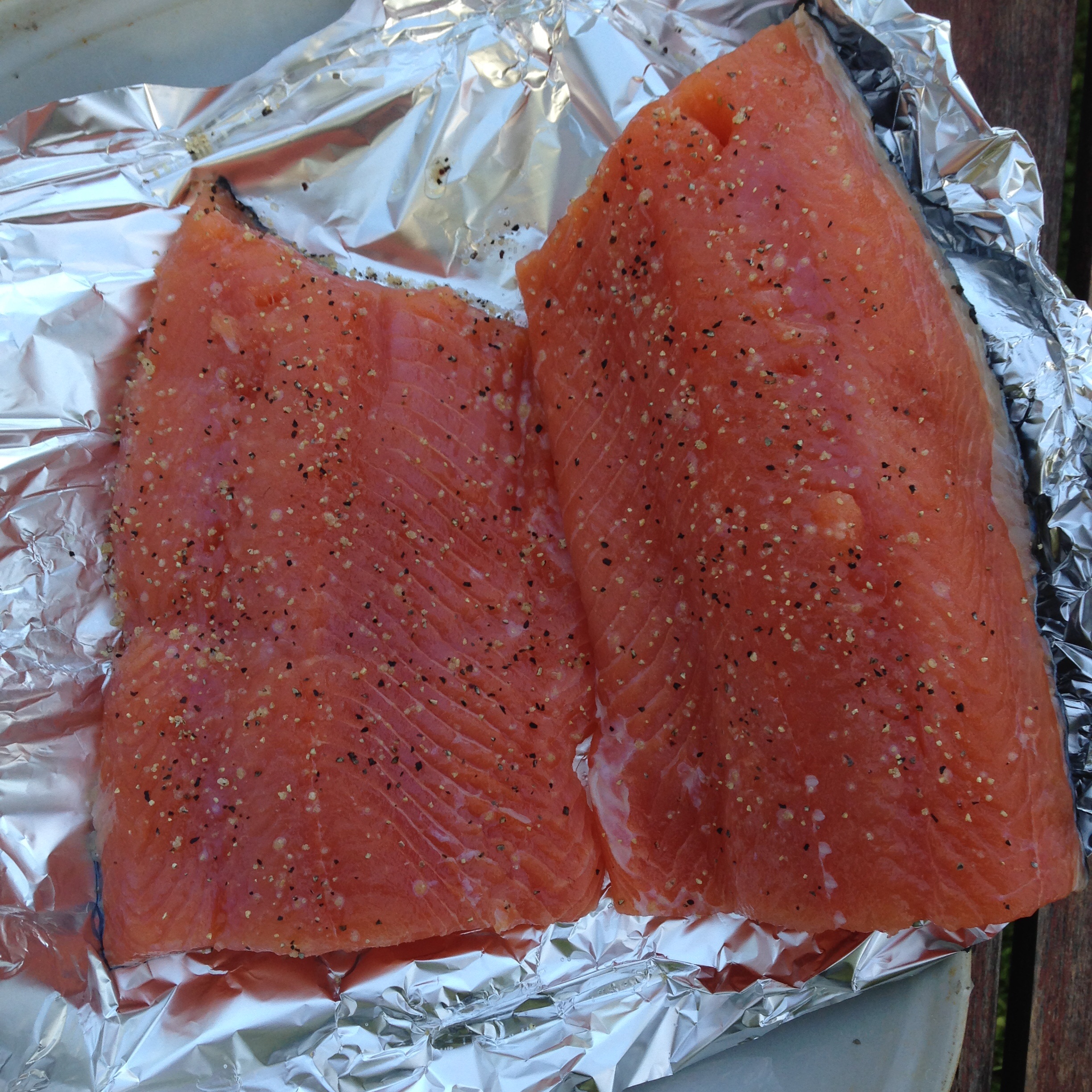 Ofta är färgen på Östersjölax blekrosa, ibland till och med vit. Men den här grilsen på ca 3 kg som jag fångade i Jockfall, Kalixälv den 9/7-15 var knallröd. Se fotot!