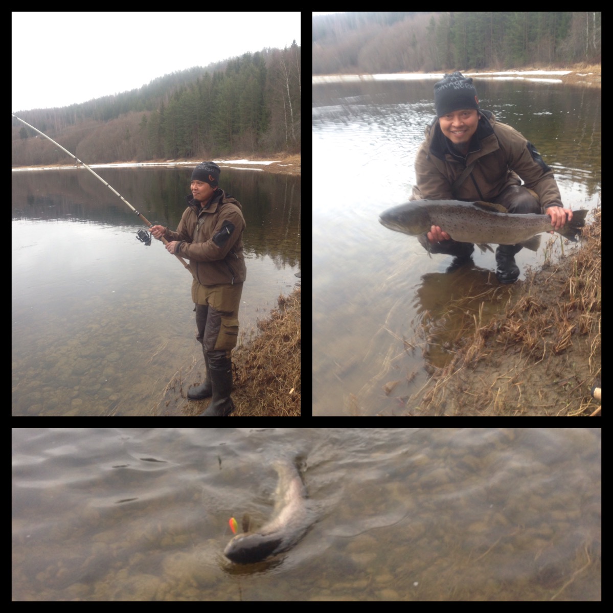 Det är inte första gången jag ser Tom drilla fisk i Ljungan. Var ute på en promenad utmed Ljungan där jag träffar Tom som haspelfiskar. Vi pratar en stund när hugget kommer. Snyggt drillat och återutsatt. Ca 4 kilo havsöring. Grattis och tack för en spännande promenad, Tom.