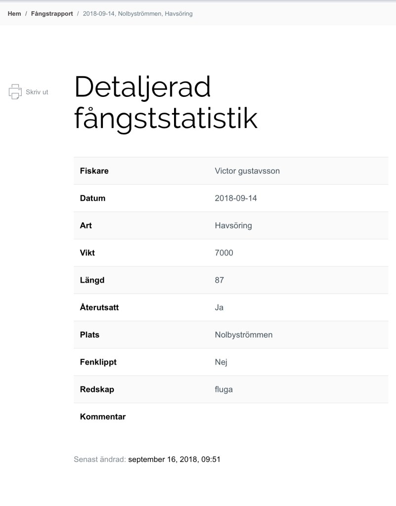 Grattis Victor Gustavsson. Vacker öring fångad i Nedre Ljungan den 14/9-18. 7 kg. Se fångstrapport och foto!