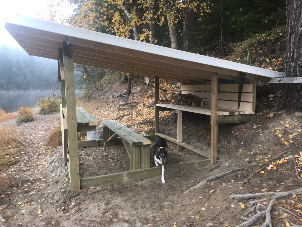 Ett par av våra duktiga fiskevärdar har byggt ett nytt regnskydd vid Klaras. Öppen konstruktion utan väggar för att klara vattentrycket vid högvatten. Se bilden!