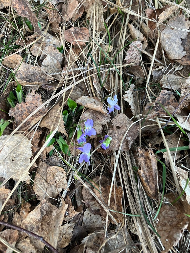 På de varmaste sydsluttningarna kulminerar nu blommningen av blåsipporna och även sundsvallsviolen.