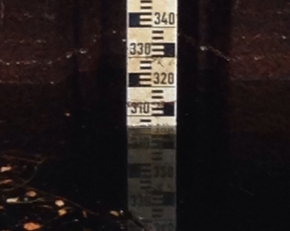 Göran Hultgren har dessutom på samma plats en centimeterangivelse på hur mycket vatten det går. Den baseras på hans fleråriga erfarenhet av vattenflödet.