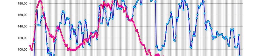 Blå linje är reglerat flöde. Röd linje är naturligt flöde. Ljungan nedströms Viforsens kraftverk. August 2012 – mars 2013. Klicka på bilden för större foto.