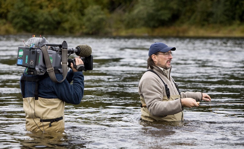 Flyfisher in river Ljusnan